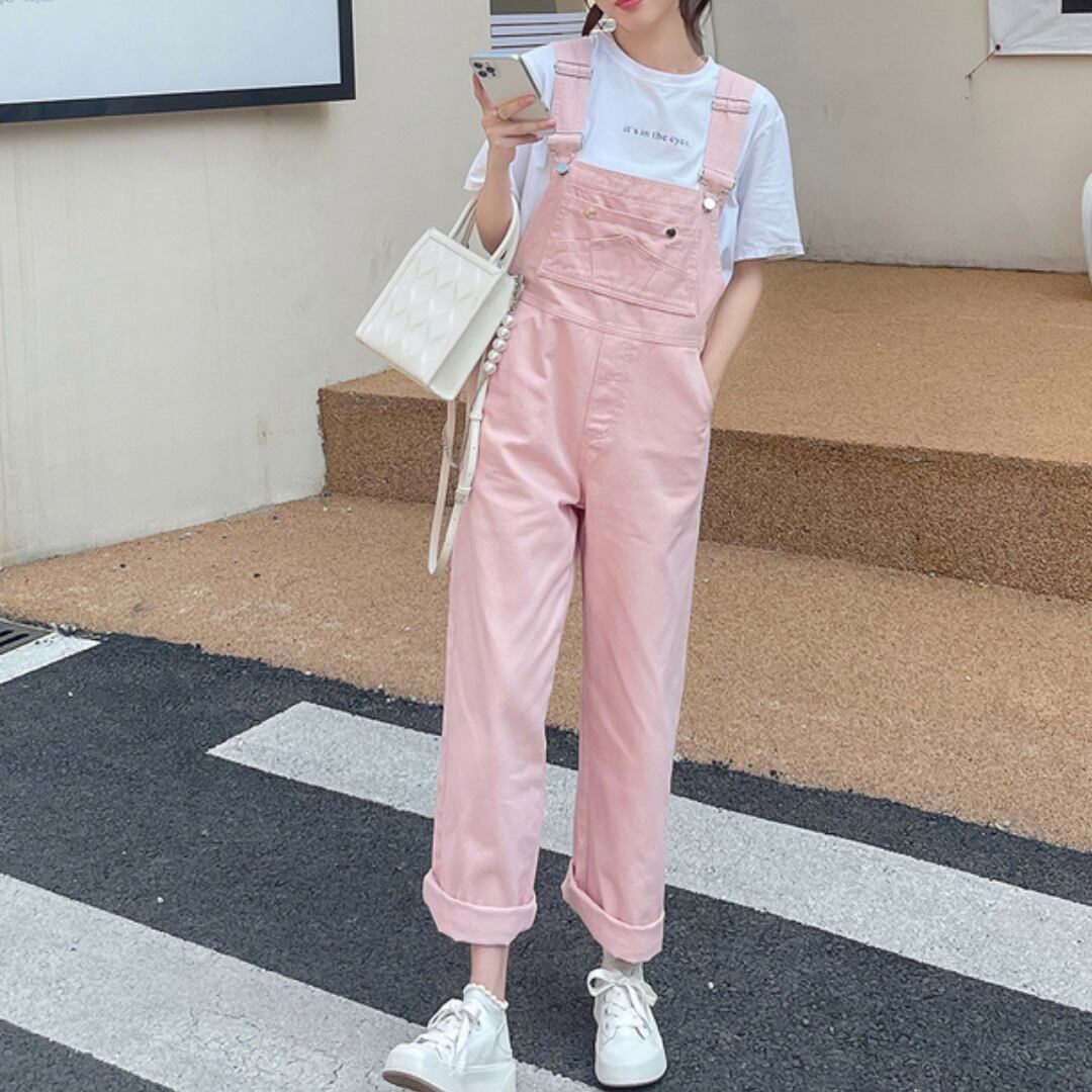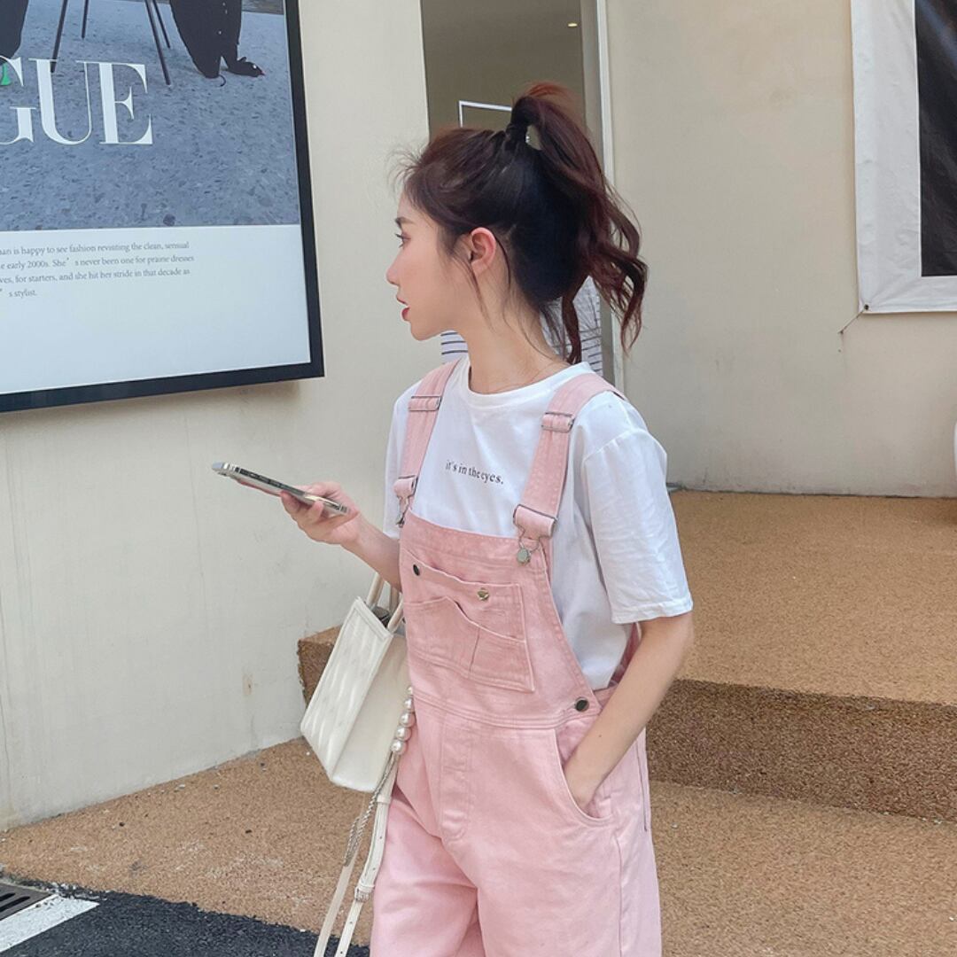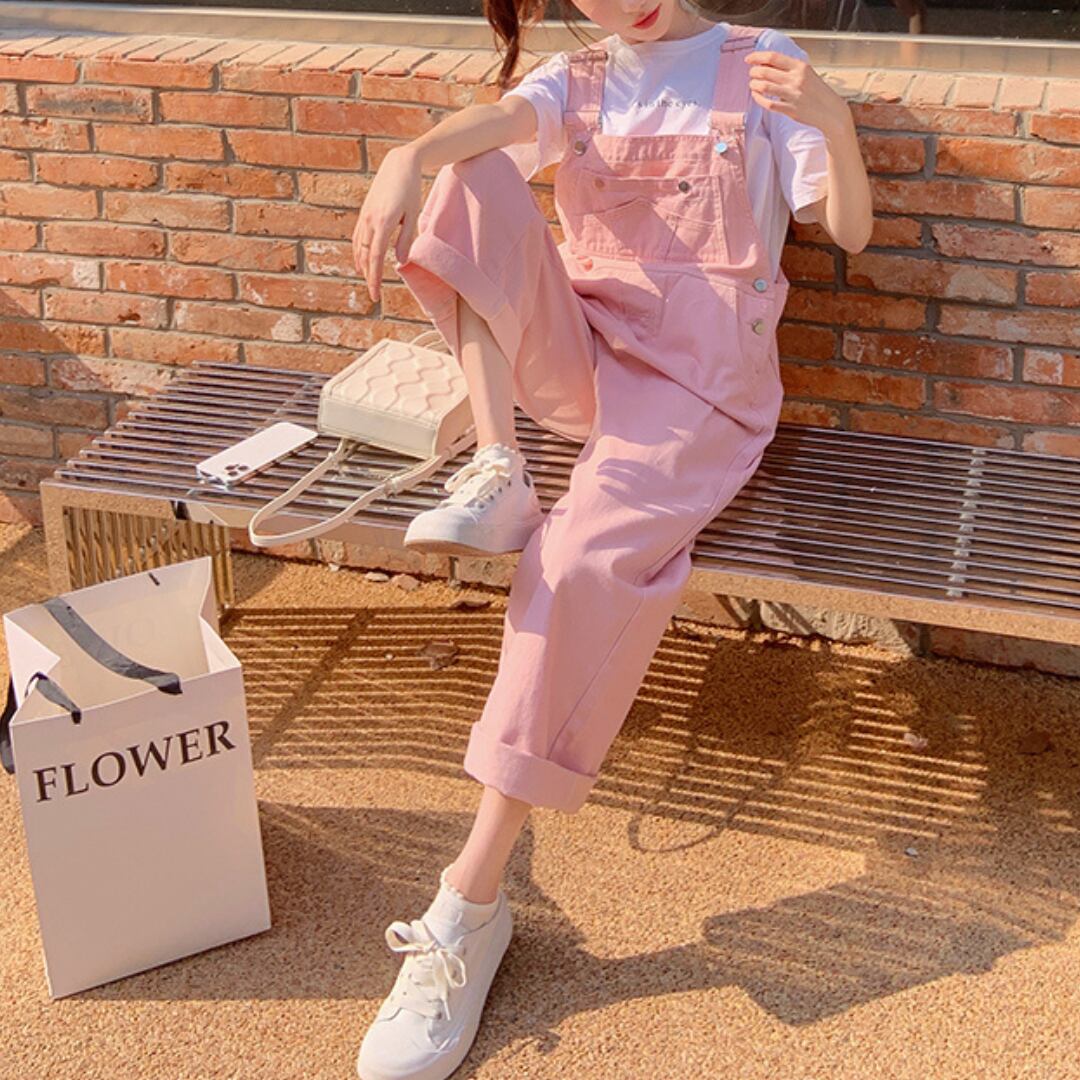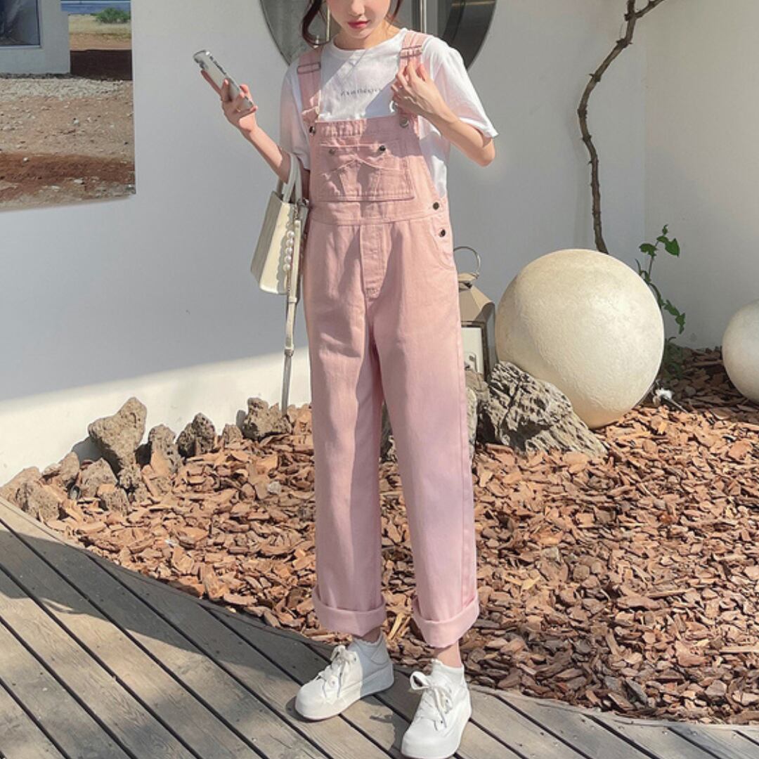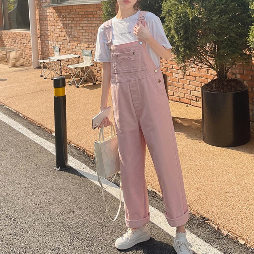 夏にぴったりの薄手のピンクデニムオーバーオール。