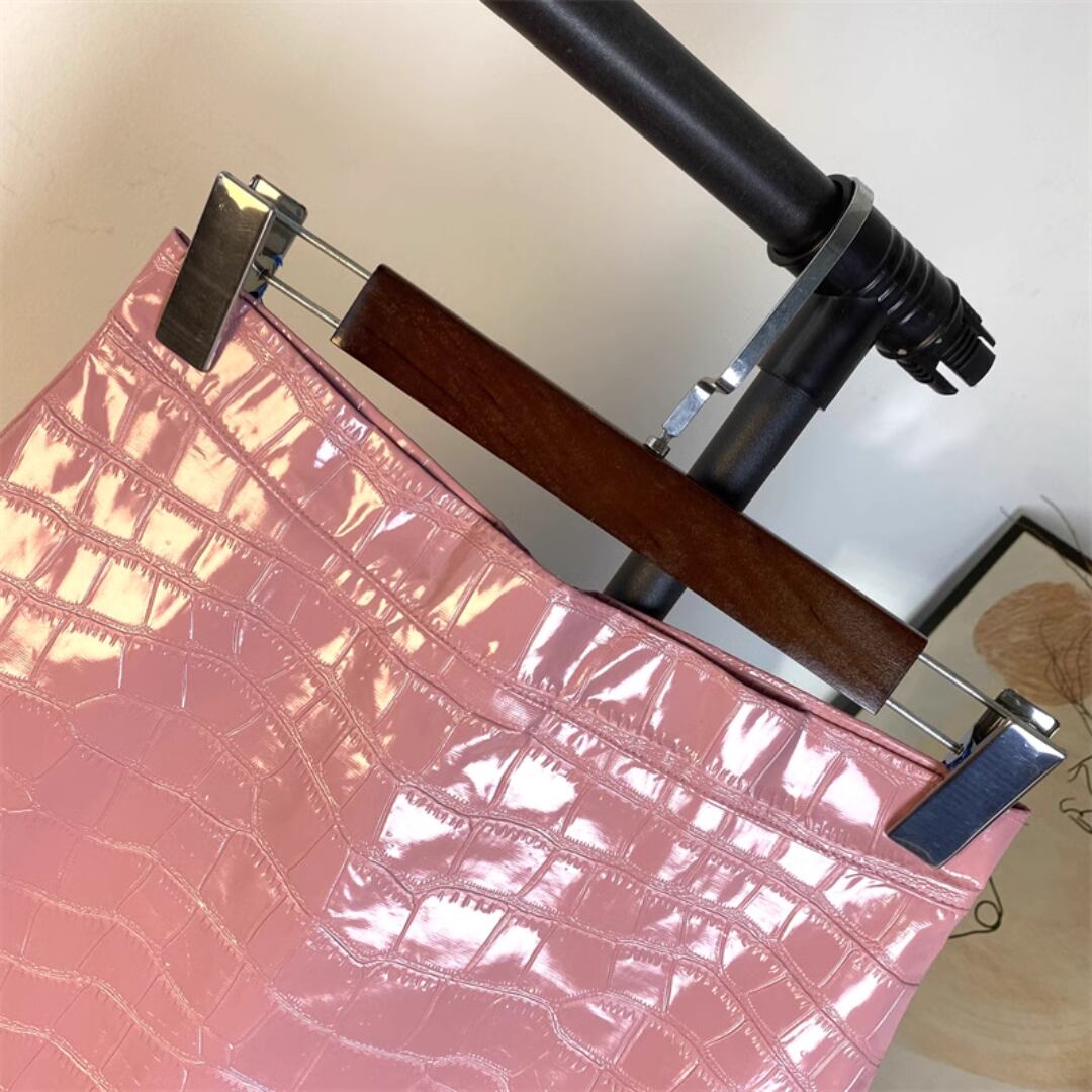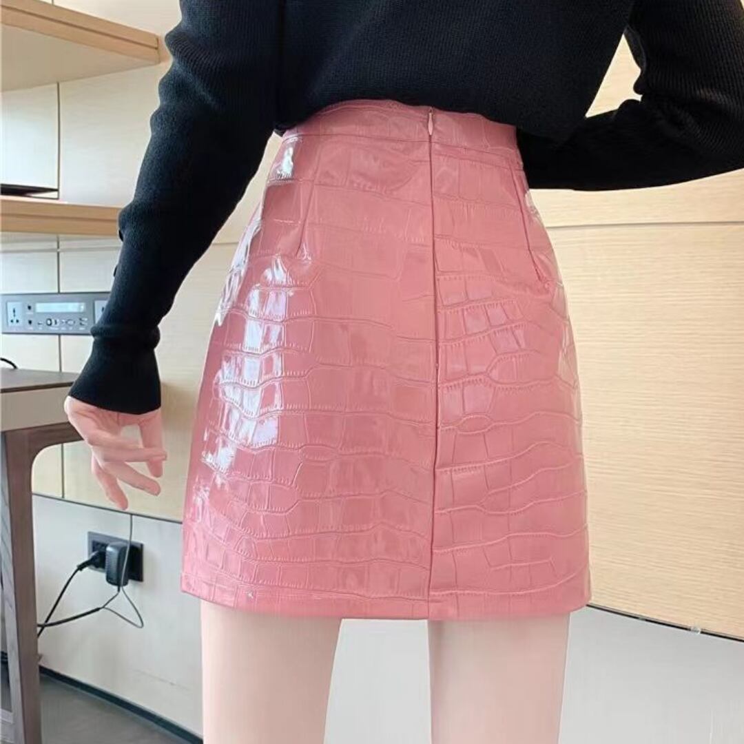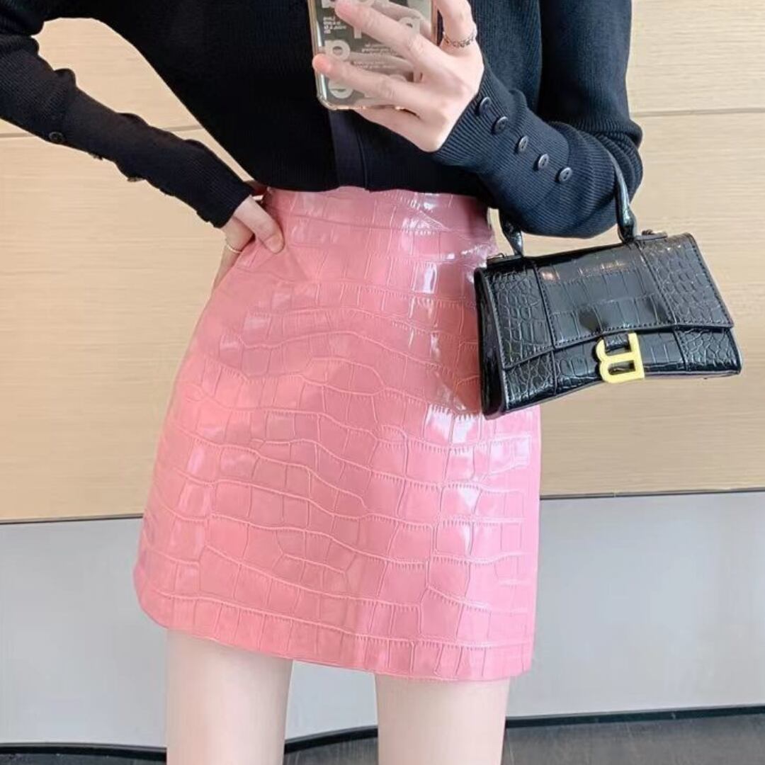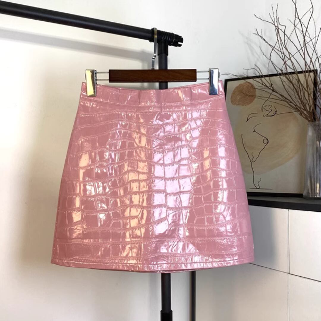 ・ピンクのおしゃれなクロコダイル柄ミニスカート。