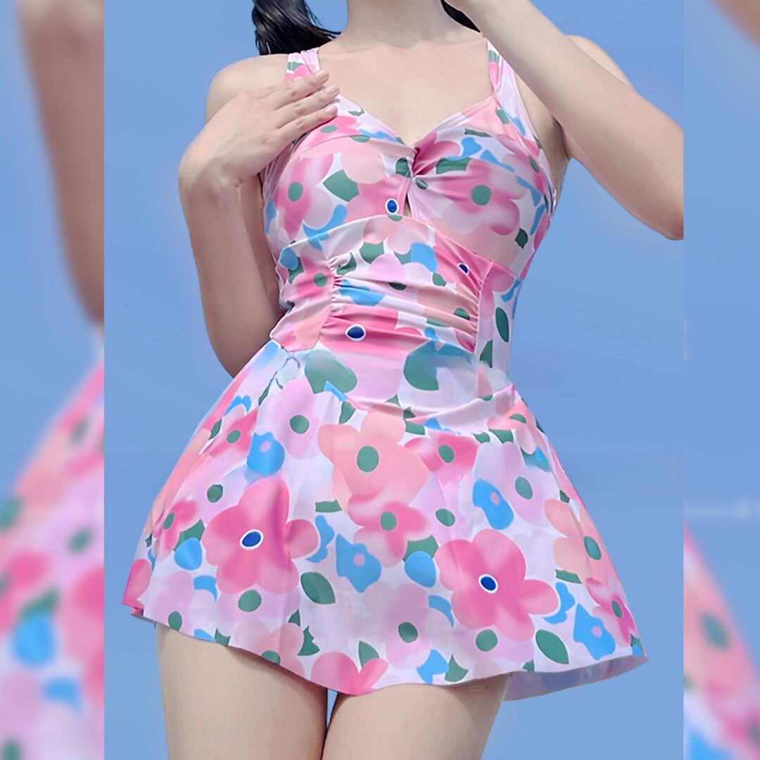 ・可愛らしいピンクの水着でプールやビーチで華やかに輝く一枚です。