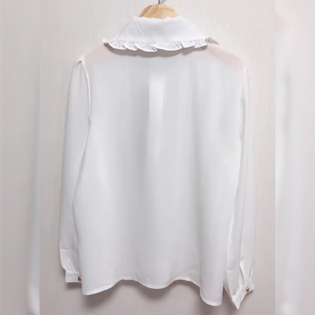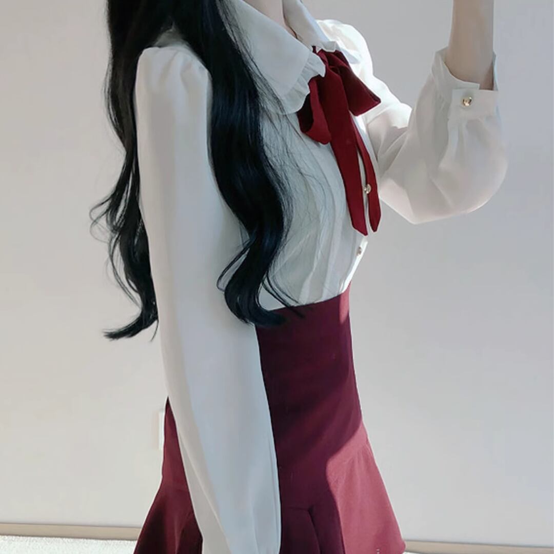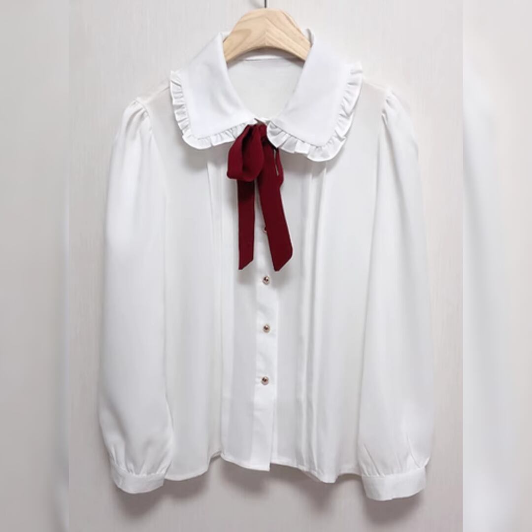 ・長袖デザインで、春の変わりやすい気候にも対応。蝶々結びのディテールが上品さを演出します。